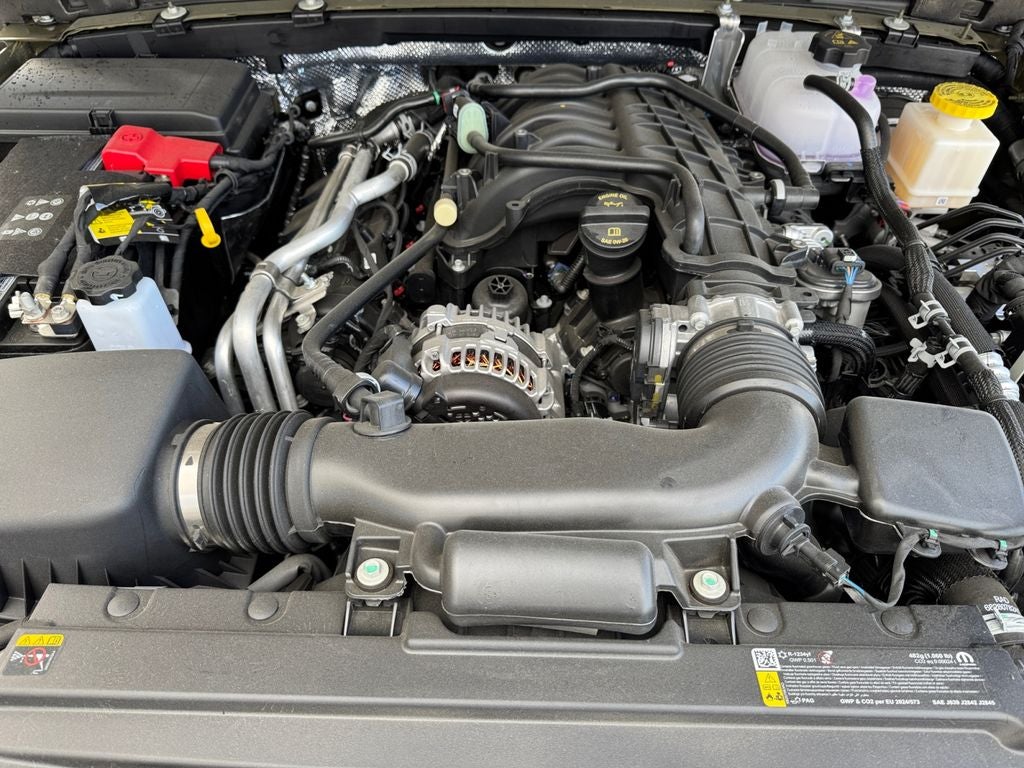 Convenience Group: Emergency/assistance Call; Front Door Locks 2-Door Passive Entry; Remote Start System; Universal Garage Door Opener; Daytime Running Lamp System; Heated Front Seats; Heated Steering Wheel; Corning Gorilla Glass. Technology Group: Google Android Auto; SiriusXM Radio Service; 12.3" Touchscreen Display; USB Host Flip; 400W Inverter; HD Radio; Integrated Center Stack Radio; Rear View Auto Dim Mirror; Bluetooth® Wireless Speaker; Integrated Voice Command with Bluetooth®; Connectivity - US/Canada; Uconnect 5 Navigation with 12.3" Display; GPS Navigation; 4G LTE Wi-Fi Hot Spot; GPS Antenna Input; Media Hub with 2 Charge Only USBs; SiriusXM with 360L; 115V Auxiliary Power Outlet; Connected Travel and Traffic Services; Alexa Built-In; Apple CarPlay. Quick Order Package 24W Willys: LED Taillamps; Protection Sill Rails; 4-Wheel Drive Decal; Black Grille; MOPAR All-Weather Slush Mats; LT255/75R17C OWL On/off Road Tires; 2-Piece Body Color Fender Flares; Front Heavy Duty Red Accent Shock Absorbers; Daytime Running Lamps LED Accents; Front LED Fog Lamps; LED Premium Reflector Headlamps; E-Locker Rear Axle; Trailer Hitch Zoom; Class IV Receiver Hitch; Security Alarm; Mold in Color Bumper with Gloss Black; Advanced Brake Assist; Willys Suspension; Heavy Duty Engine Cooling; Automatic Headlamps; Air Conditioning with Auto Temp Control; Deep Tint Sunscreen Windows; Off-Road Plus Mode; 17" X 7.5" Painted Black Wheels; Willys Hood Decal; Full Speed Forward Collision Warning Plus; Rear Heavy Duty Red Accent Shock Absorbers; Front Door Locks 2-Door Passive Entry; Cluster 7.0" TFT Color Display; Power Heated Mirrors; Enhanced Adaptive Cruise Control; Auxiliary Switches; Premium Wrapped Steering Wheel; Sun Visors with Illuminated Vanity Mirrors. Black 3-Piece Hard Top. 41. **Equipment listed is based on original vehicle build and subject to change. Please confirm the accuracy of the included equipment by calling the dealer prior to purchase.**