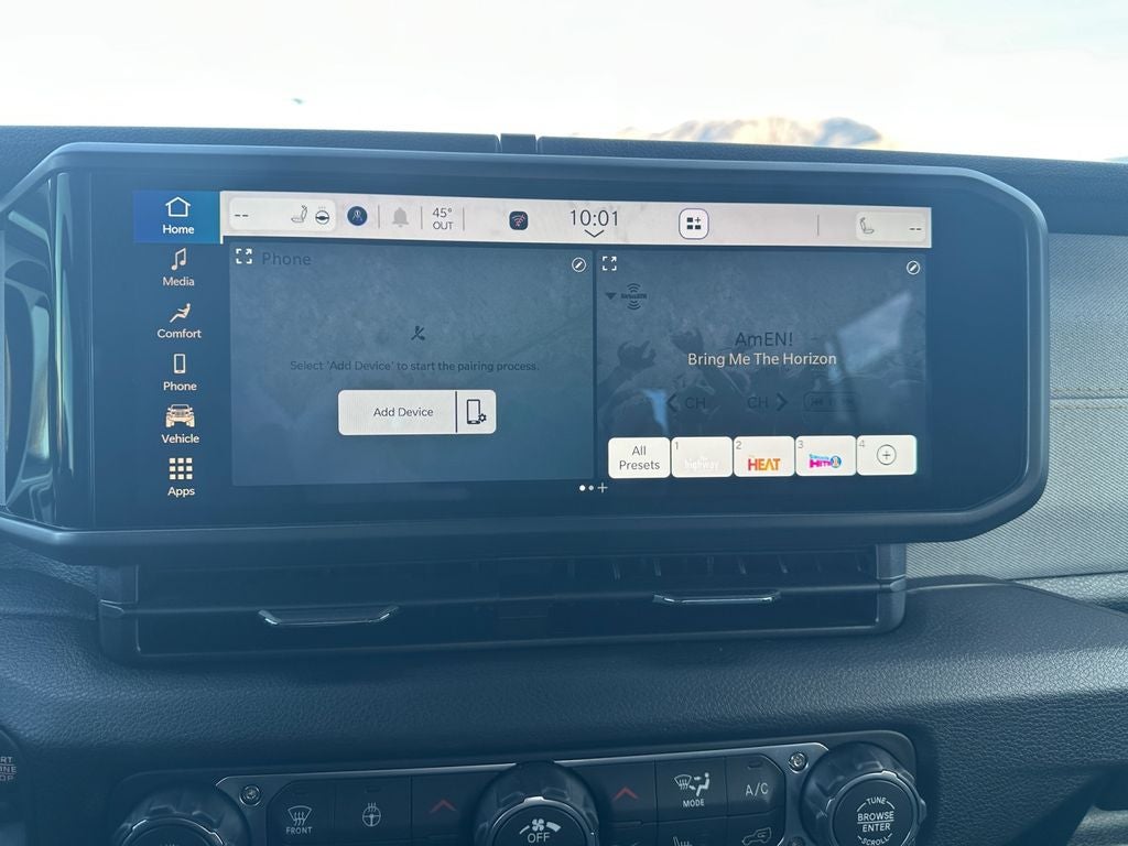 An off-road package is equipped on this model. Never get into a cold vehicle again with the remote start feature on this model. This 1/2 ton pickup is pure luxury with a heated steering wheel. This Jeep Gladiator offers Android Auto for seamless smartphone integration. This vehicle offers Automatic Climate Control for personalized comfort. This vehicle offers Apple CarPlay for seamless connectivity. Bluetooth® technology is built into this 2026 Jeep Gladiator , keeping your hands on the steering wheel and your focus on the road. The Jeep Gladiator's Forward Collision Warning system alerts the driver to potential front-end collisions, enhancing safety. Protect the Jeep Gladiator from unwanted accidents with a cutting edge backup camera system. The rear parking assist technology on this 1/2 ton pickup will put you at ease when reversing. The system alerts you as you get closer to an obstruction. Set the temperature exactly where you are most comfortable in this unit. The fan speed and temperature will automatically adjust to maintain your preferred zone climate.