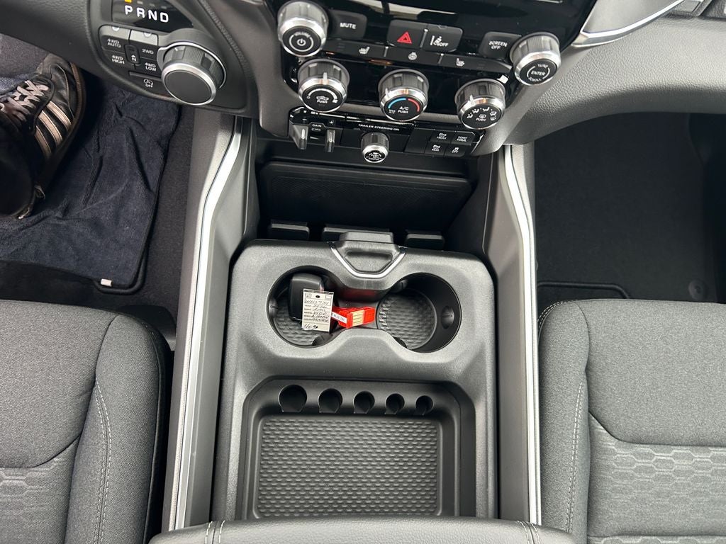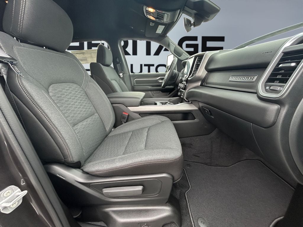 Quick Order Package 21Z Big Horn. Big Horn Level 1 Equipment Group: SiriusXM Radio Service; Rear Window Defroster; Rear View Auto Dim Mirror; Power Adjustable Pedals; Leather Wrapped Steering Wheel; Rear Power Sliding Window; Rear Dome with On/off Switch Lamp; Glove Box Lamp; Auto Power-Folding Mirrors; Exterior Mirrors with Heating Element; Auto Dim Exterior Driver Mirror; Heated Front Seats; Heated Steering Wheel; Black Exterior Mirrors; Black Premium Power Mirrors; SiriusXM Satellite Radio; 400W Inverter; Deluxe Cloth Bucket Seats; Exterior Mirrors with Supplemental Signals; Steering Wheel Mounted Audio Controls; Exterior Mirrors Courtesy Lamps; Body Color Fender Flares; 115V Auxiliary Power Outlet; Universal Garage Door Opener; 2nd Row in Floor Storage Bins; Convex Wide-Angle Exterior Mirror Insert; Sun Visors with Illuminated Vanity Mirrors. Sport Appearance Package: Grille Surround 1 Body Color Texture 1 Black; Body Color Tailgate Handle; Black Interior Accents; Body Color Front Bumper; Body Color Door Handles; RAM Grille Badge - Chrome; Body Color Rear Bumper with Step Pads; 275/55R20 OWL All Season Tires; Grille Surround 1 Body Color Texture 1 Black; Body Color Tailgate Handle; Black Interior Accents; Body Color Front Bumper; Body Color Door Handles; RAM Grille Badge - Chrome; Body Color Rear Bumper with Step Pads. Protection Group: Steering Gear Skid Plate; Tow Hooks; Transfer Case Skid Plate; Fuel Tank Skid Plate. Trailer Tow Group: Trailer Light Check; Trailer Brake Control; Accent Color Tailgate Handle; Trailer Reverse Steering Control; Trailer Tire Pressure Monitoring System; Black Trailer Tow Power Mirrors; Trailer Brake Control; Accent Color Tailgate Handle; Trailer Reverse Steering Control; Trailer Tire Pressure Monitoring System; Black Trailer Tow Power Mirrors. 9 Amplified Speakers with Subwoofer. Trailer Brake Control. Granite Crystal Met CC. Rear Underseat Compartment Storage. Black Trailer Tow Power Mirrors. **Equipment listed is based on original vehicle build and subject to change. Please confirm the accuracy of the included equipment by calling the dealer prior to purchase.**