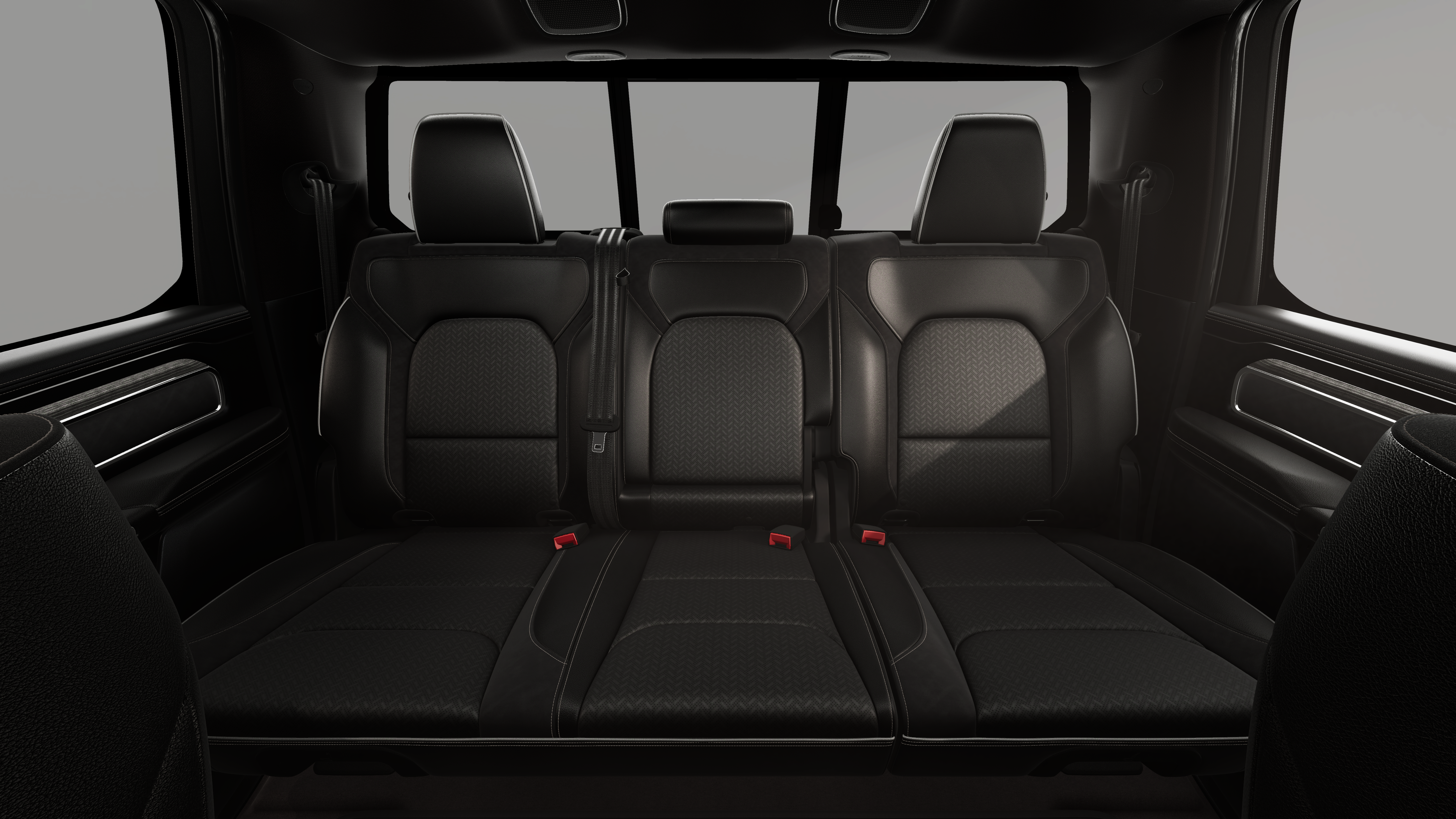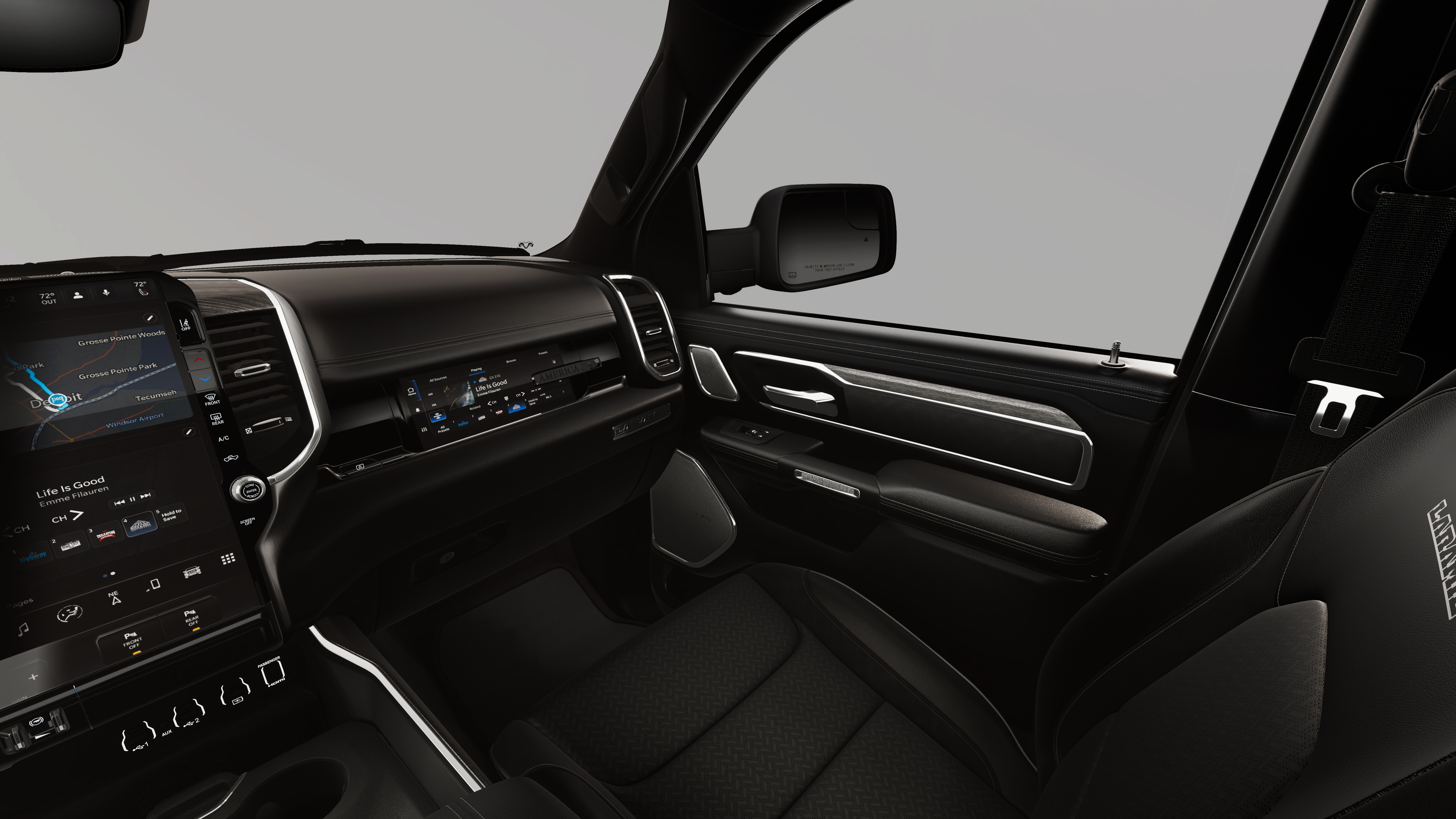 Quick Order Package 27H Laramie. Laramie Level 1 Equipment Group: Remote Tailgate Release; Rain Sensitive Windshield Wipers. Night Edition: Black Headlamp Bezels; Auto Power-Folding Mirrors; 22" X 9" Forged Aluminum Wheels; Exterior Mirrors with Heating Element; Proximity Approach/departure Lamps; Auto Dim Exterior Driver Mirror; Anti-Spin Differential Rear Axle; Accent Color Door Handles; Black Interior Accents; Body Color Front Bumper; Grille Surround 3 Black Texture 2 Black; Body Color Rear Bumper with Step Pads; RAM Grille Badge - Black; Black Painted Exterior Mirrors Caps; Exterior Mirrors Approach Lamps; Accent Color Premium Power Mirrors; Exterior Mirrors with Supplemental Signals; Sport Performance Hood; Exterior Mirrors Courtesy Lamps; Black Exterior Truck Badging; Accent Color Tailgate Handle; Exterior Mirrors with Memory; Dual Exhaust with Black Tips; Convex Wide-Angle Exterior Mirror Insert; Black Tail Lamp Bezels. 22" X 9" Forged Aluminum Wheels. Anti-Spin Differential Rear Axle. 33 Gallon Fuel Tank. Trailer Brake Control. 3.92 Rear Axle Ratio. Rear Wheelhouse Liners. **Equipment listed is based on original vehicle build and subject to change. Please confirm the accuracy of the included equipment by calling the dealer prior to purchase.**