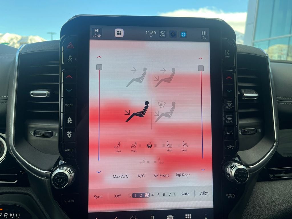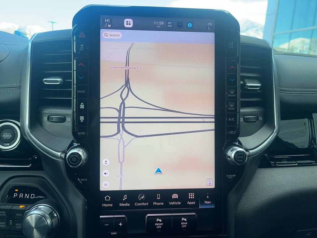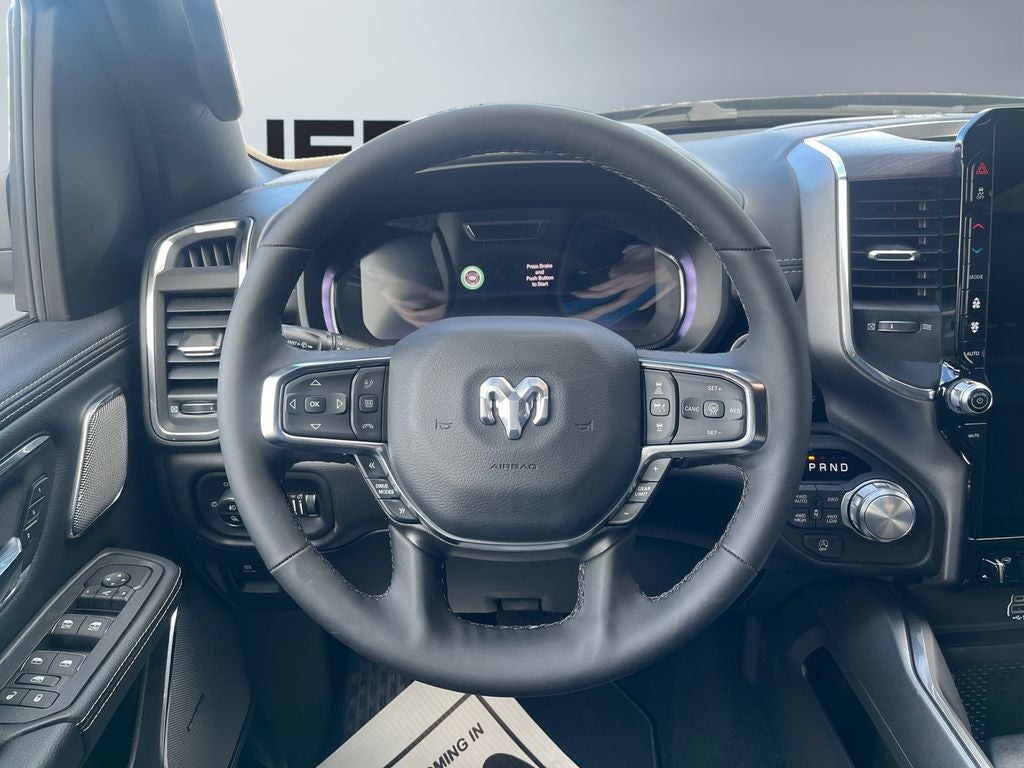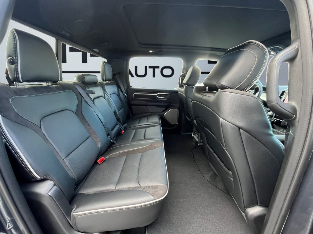 Keep your hands warm all winter with a heated steering wheel in the vehicle . This unit has automated speed control that adjusts to maintain a safe following distance, enhancing highway driving convenience. Start this vehicle from inside with remote start. The installed navigation system will keep you on the right path. This Ram 1500 comes equipped with Android Auto for seamless smartphone integration on the road. with XM/Sirus Satellite Radio you are no longer restricted by poor quality local radio stations while driving the Ram 1500. Anywhere on the planet, you will have hundreds of digital stations to choose from. The leather seats in this Ram 1500 are a must for buyers looking for comfort, durability, and style. See what's behind you with the back up camera on this Ram 1500. This vehicle features a hands-free Bluetooth® phone system. This vehicle offers Apple CarPlay for seamless connectivity. Enjoy your music even more with the premium sound system in it.
