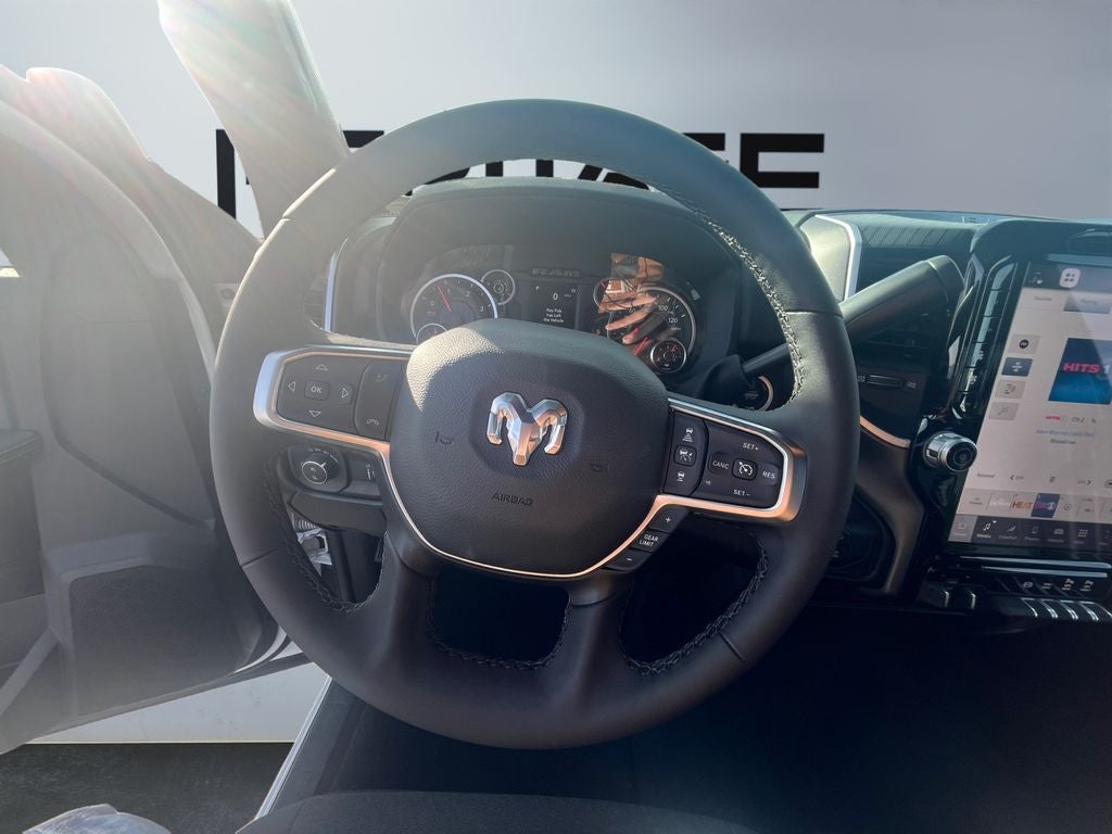 Quick Order Package 24Z Big Horn. Cold Weather Group: Engine Block Heater; MOPAR Winter Front Grille Cover. Off Road Package: LT275/70R18E OWL On/off Road Tires; Front Performance Tuned Shock Absorbers; Transfer Case Skid Plate Shield; Hill Descent Control; Rear Performance Tuned Shock Absorbers. Sport Appearance Package: Body Color Grille-Surround; Black Interior Accents; Sport Decal; Painted Front Bumper; Painted Rear Bumper. Big Horn Level 1 Plus Equipment Group: Google Android Auto; SiriusXM Radio Service; For Details. Visit DriveUconnect.com; For More Info. Call 800-643-2112; Integrated Voice Command with Bluetooth®; Emergency Vehicle Alert System (EVAS); 12" Touchscreen Display; Premium Cloth 40/20/40 Bench Seat; Glove Box Lamp; Auto Power-Folding Mirrors; Footwell Courtesy Lamp; Anti-Spin Differential Rear Axle; Mirror Running Lights; MOPAR Deployable Bed Step; Alexa Built-In; Apple CarPlay; Power-Adjustable Convex Aux Mirrors; Forward and Reverse Utility Lights; Locking Lower Glove Box; Remote Start System; 9 Alpine Speakers with Subwoofer; Disassociated Touchscreen Display; Dual Glove Boxes; 2nd Row in Floor Storage Bins; Rear View Auto Dim Mirror; Rear Dome with On/off Switch Lamp; LED Bed Lighting; Connectivity - US/Canada; GPS Navigation; 4G LTE Wi-Fi Hot Spot; GPS Antenna Input; Exterior Mirrors with Heating Element; SiriusXM with 360L; Global Telematics Box Module; Connected Travel and Traffic Services; Foam Bottle Insert (door Trim Panel); Black Exterior Mirrors; Big Horn Instrument Panel Badge; Off-Road Info Pages; Selectable Tire Fill Alert; Trailer Tow Pages; HD Radio; Uconnect 5 Navigation with 12.0" Display Radio; Power Heated Folding Telescopic Mirrors; Exterior Mirrors with Supplemental Signals; Steering Wheel Mounted Audio Controls; Exterior Mirrors Courtesy Lamps; Air Conditioning ATC with Dual Zone Control; MOPAR Spray in Bedliner; Power Adjust Mirrors; Luxury Steering Wheel; Power Telescoping Mirrors. Heated Seats and Wheel Group: Heated Front Seats; Heated Steering Wheel. MOPAR 20K Direct Mount 5th Wheel Hitch. Premium Cloth 40/20/40 Bench Seat. 5th Wheel/gooseneck Towing Prep Group. Anti-Spin Differential Rear Axle. LT275/70R18E OWL On/off Road Tires. Remote Start System. Power 2-Way Driver Lumbar Adjust. Transfer Case Skid Plate Shield. **Equipment listed is based on original vehicle build and subject to change. Please confirm the accuracy of the included equipment by calling the dealer prior to purchase.**