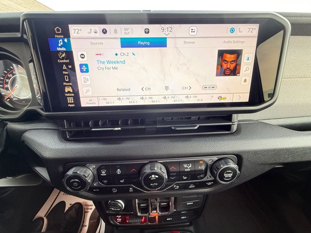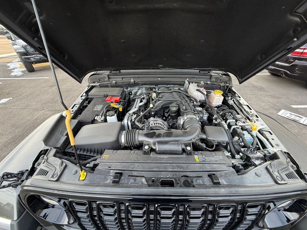 Convenience Group: Emergency/assistance Call; Front Door Locks 2-Door Passive Entry; Remote Start System; Universal Garage Door Opener; Daytime Running Lamp System; Heated Front Seats; Heated Steering Wheel; Corning Gorilla Glass. Safety Group: Auto High Beam Headlamp Control; Blind Spot and Cross Path Detection; LED Taillamps; ParkSense Rear Park Assist System. Technology Group: Google Android Auto; SiriusXM Radio Service; 12.3" Touchscreen Display; USB Host Flip; 400W Inverter; HD Radio; Integrated Center Stack Radio; Rear View Auto Dim Mirror; Bluetooth® Wireless Speaker; Integrated Voice Command with Bluetooth®; Connectivity - US/Canada; Uconnect 5 Navigation with 12.3" Display; GPS Navigation; 4G LTE Wi-Fi Hot Spot; GPS Antenna Input; Media Hub with 2 Charge Only USBs; SiriusXM with 360L; 115V Auxiliary Power Outlet; Connected Travel and Traffic Services; Alexa Built-In; Apple CarPlay. Quick Order Package 24W Willys: LED Taillamps; Protection Sill Rails; 4-Wheel Drive Decal; Black Grille; MOPAR All-Weather Slush Mats; LT255/75R17C OWL On/off Road Tires; 2-Piece Body Color Fender Flares; Front Heavy Duty Red Accent Shock Absorbers; Daytime Running Lamps LED Accents; Front LED Fog Lamps; LED Premium Reflector Headlamps; E-Locker Rear Axle; Trailer Hitch Zoom; Class IV Receiver Hitch; Security Alarm; Mold in Color Bumper with Gloss Black; Advanced Brake Assist; Willys Suspension; Heavy Duty Engine Cooling; Automatic Headlamps; Air Conditioning with Auto Temp Control; Deep Tint Sunscreen Windows; Off-Road Plus Mode; 17" X 7.5" Painted Black Wheels; Willys Hood Decal; Full Speed Forward Collision Warning Plus; Rear Heavy Duty Red Accent Shock Absorbers; Front Door Locks 2-Door Passive Entry; Cluster 7.0" TFT Color Display; Power Heated Mirrors; Enhanced Adaptive Cruise Control; Auxiliary Switches; Premium Wrapped Steering Wheel; Sun Visors with Illuminated Vanity Mirrors. Granite Crystal Met CC. MOPAR Spray in Bedliner. **Equipment listed is based on original vehicle build and subject to change. Please confirm the accuracy of the included equipment by calling the dealer prior to purchase.**